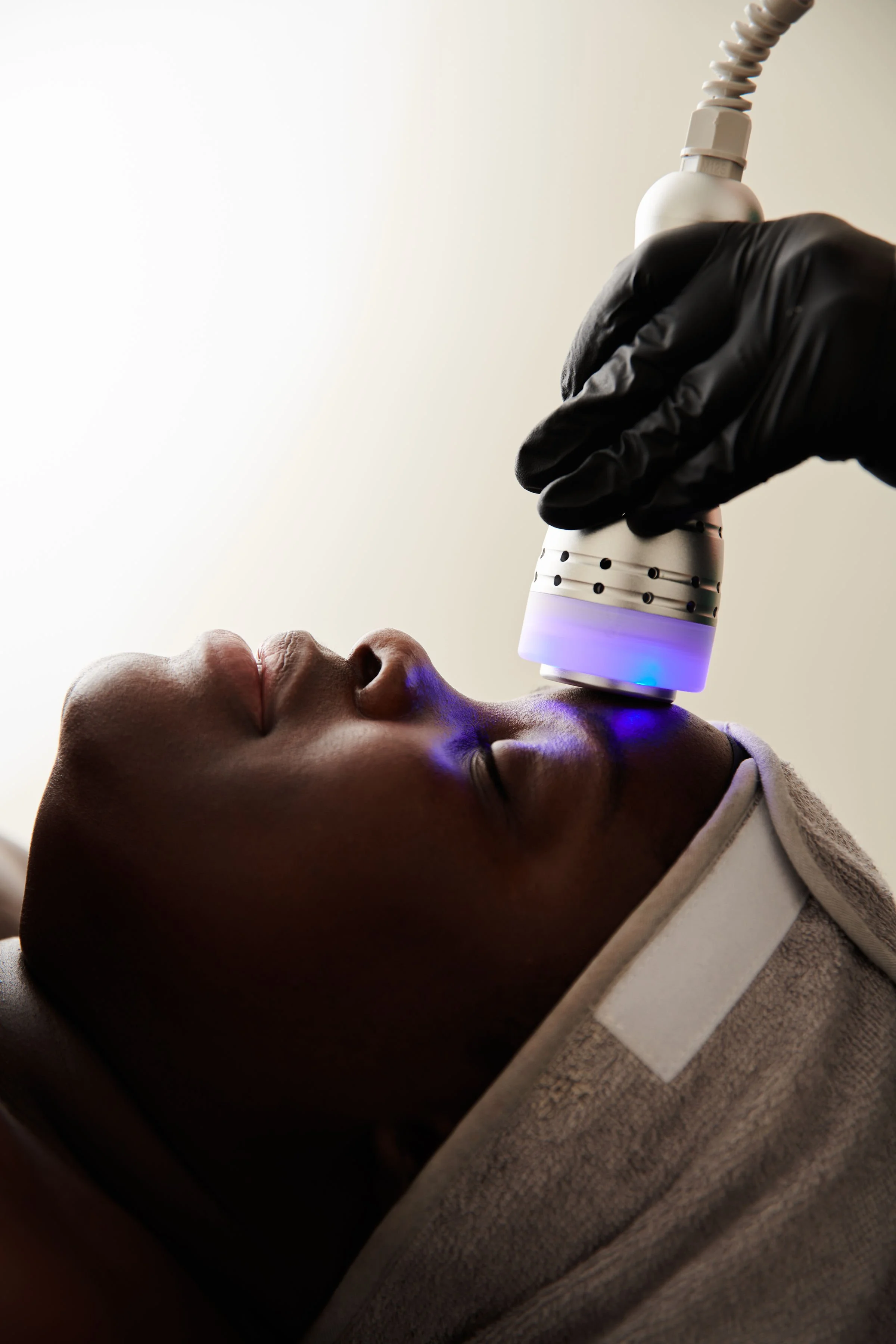 Blue light targets acne-causing bacteria to reduce breakouts.